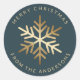 Create beautiful Christmas labels featuring a faux gold foil snowflake. Easily personalize these modern Christmas labels with your family name.