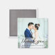 Simple elegant photo magnet wedding favor or thank you gift. Customize the black script font typography overlay with your names and date.
