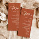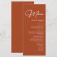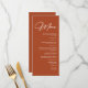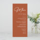 Genießen Sie Ihre Hochzeit im Herbst mit unserem Simple Fall Terracotta Wedding Menu, der perfekten Ergänzung zu Ihrer Herbsthochzeit. Es ist in einer warmen Terrakotta-Farbe gestaltet und ergänzt verbrannte orange Hochzeiten und bohobige Hochzeiten im Herbst. Die Speisekarte, die sich ideal für die Tischdecken der Hochzeit im Herbst und die Dekoration der Hochzeiten im Herbst eignet, verleiht dem Ganzen eine angenehme Hochzeit im Herbst. Vervollständigen Sie Ihre Hochzeit im Herbst Dekorationen mit dieser stilvollen Touch zu Ihren Hochzeit im Herbst-Ideen.