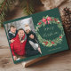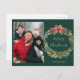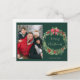 Feiern Sie die Saison mit diesem Foto festlichen Kranz Weihnachtsfeiertag Postkarte. Ersetzen Sie das Foto durch Ihr eigenes. Grüner Hintergrund mit klassischem Weihnachtskranz. Hellgrüner Text liest, Frohe Weihnachten in der Mitte des Kranzes. Unter dem Kranz können Sie den Text mit Ihrem eigenen Namen personalisieren.