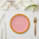 This custom bridal shower paper plate features a minimalist aesthetic in pink and orange.