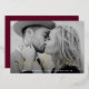 Einfache Save the Date-Karte mit einem vollblutbaren horizontalen Foto mit "Save the Date" in einem Goldfolienskript. Personalisieren Sie die minimalistische Save the Date Karte mit Ihrem Namen, Hochzeitstag und Hochzeitsort. Die Karte kehrt zu einem soliden bordeauxfarbenen Hintergrund zurück.
