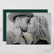 Einfache Save the Date-Karte mit einem vollblutbaren horizontalen Foto mit "Save the Date" in einem Goldfolienskript. Personalisieren Sie die minimalistische Save the Date Karte mit Ihrem Namen, Hochzeitstag und Hochzeitsort. Die Karte kehrt zu einem soliden grünen Hintergrund des Waldes zurück.