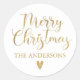 Simple Gold Merry Christmas Calligraphy Script Runder Aufkleber