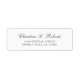 Einfache Rücksendeadressen-Aufkleber mit einem sauberen und minimalen Design mit Ihrem Namen in einem eleganten Skript zusammen mit zwei Zeilen für Ihre Adresse in grau über einem weißen Hintergrund. Fügen Sie Ihren Umschlägen eine persönliche Touch mit diesem schlichten, schlichten, Rücksendelabel hinzu, das noch immer als schick erscheint.