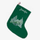 This green Christmas tree stocking with the name in a pale green matching the tree design colors is a simple stylish stocking that will be look wonderful with the Christmas decorations and be a pleasure to use year after year