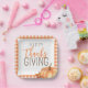 Diese einfache Papiertafel aus Erntedank verfügt über einen Aquarellkürbis und ein Blattwerk mit kariertem, orangefarbenem Schnittmuster.
