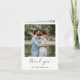 Niedliche gefaltete Foto Hochzeit danke Karte mit einem einfachen und minimalistischen Design mit "danke" in einem eleganten Drehbuch mit einem Herz am Ende. Das Innere hat ein zweites Bild und Ihr persönliches Dankeschön Nachricht. Ein modernes Schwarz-Weiß-Design, das sich mit jedem Hochzeitsstil abstimmt.
