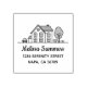 Eine einfache Linienkunst eines zweistöckigen Hauses mit einem in der links Seite geparkten Wagen und einem Baum auf der rechten Seite. Passen Sie sich mit Ihrer eigenen Adresse an.
