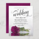 Dieses schlichte und dennoch schöne Budget-Hochzeitsangebot besticht durch ein elegantes Design mit einer lila, magentafarbenen oder beerfarbenen Rose und einer eleganten Script-Kalligraphie in einem Single. Mit einem günstigen Preis ist diese Einladung die perfekte Lösung für Eleganz und Anmut, ohne die Bank zu brechen.