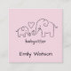 Einfache Linie zeichn eines Mama- und Babyelefanten mit einer niedlichen, hellrosa quadratischen Babysitter Visitenkarte! Seien Sie mit unserer Baby Square Business Card der "Go to Babysitter" in der Stadt - denn Ihre Kinderbetreuung verdient eine so niedliche und effiziente Karte wie Sie sind! #Babysitter