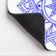 Dieses Mauspad hat ein weiteres einfaches Mandala-Design aus Linien, Kurven und Formen in blau auf einem weißen Feld.