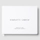 A simple minimalist, modern, elegant couple's wedding name monogram with date and location, on a crisp white background. Simple elegant, wedding guest signing keepsake book. Personalize with your names, date, and venue location.