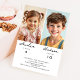 This modern, minimalist birthday invitation features a clean white background and sophisticated script typography, perfect for honoring two special people at once. Personalized handwritten-style names add a heartfelt touch. With space for two photos and fully customizable details (date, time, venue, RSVP), this design effortlessly combines elegance and practicality. Ideal for joint birthdays, kids, siblings, couples, or friends sharing a milestone, this invitation is designed to impress and simplify your planning.