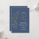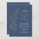 Simple Modern Gold Leaf Blue Wedding Einladung