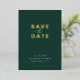 Simple Modern Minimal Emerald Green Save The Date Foil Invitation