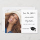 On front: Add your own vertical size photo of the graduate. A chic white background, black text. Templates for a name and date. The name and the text: Save the Date are written with a modern hand lettered style script. With a cap, tassel topper.