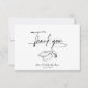 A simple, modern graduation party thank you card featuring an elegant handwritten-style “Thank You” on the front. A minimal doodle illustration of a graduation cap with tassel adds a playful yet refined touch. The back is left blank for your personal message, making it easy to write a heartfelt note and show your appreciation for celebrating this special milestone.