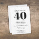 This simple yet modern surprise 40th birthday invitation is designed with elegance and fun in mind. A bold “40” in classic serif font takes center stage, with “soon to be” above and “join us to celebrate” with the honoree’s name below, finished with the phrase “but keep it a secret.” The back keeps the mystery alive with “hush, hush, it’s a surprise” framed by playful confetti. Set on a crisp white background with black lettering, the design is easy to personalize with all your party details for a polished look.