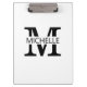 This modern design features a large monogram with name. Simple and stylish, this clipboard is a great addition to your office. To personalize it, simply click 'personalize this design,' enter your details, and Zazzle will take care of the rest.