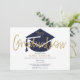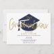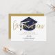 Simple Navy Blue and Gold Script Graduation Party Einladung