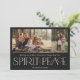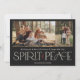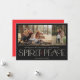 Diese Foto-Grußkarten sind mit dem Gruß "Frohe Weihnachten und ein glückliches neues Jahr" und dem Gruß "Spirit of Peace" in großen Elfenbein- und Rottbriefen auf schwarzem Hintergrund mit Platzhaltern versehen, um zwei Ihrer Lieblingslieder hinzuzufügen: Familienname & das Jahr.