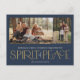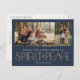 Dieses Foto, in dem Sie Postkarten begrüßen können, enthält den Gruß "Frohe Weihnachten und ein glückliches neues Jahr", zusammen mit dem Gruß "Spirit of Peace", in großen goldenen und elfenbeinigen Briefen auf marinischem Hintergrund mit Platzhaltern, um zwei Ihrer Lieblingslieder hinzuzufügen: Familienname & das Jahr.