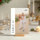 This stunning 2-sided table number card features a beautiful photo and combines elegance with a modern touch, making it suitable for any season. The card displays a picture of the couple alongside a customizable monogram. To personalize this design, simply click on "Personalize This Design," upload your photo, enter your details, and Zazzle will take care of the rest.