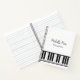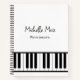 Black and white piano lessons notebook, with a simple keyboard design and customizable lettering. Great for your music lessons and practice notes.