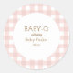 Simple pink gingham baby shower circular sticker.