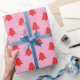 Simple Red Christmas Trees on Pink Geschenkpapier