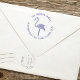 This design features a return address with a circle text font self-inking stamp with a tropical pink flamingo nature bird and a simple minimalist typography style, great for a beach house on coastal island in Florida, a stylish trendy chic cute festive design, a fun whimsical animal nature, stylish unique mailing supplies, a mailing stationery envelope stamp, a creative chic simplistic modern, great for beach sand tropics cottage