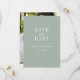 Create your own custom wedding save the dates. Add one of your favorite photos together alongside your wedding date and details in elegant sage green design with modern typography.