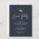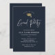 Einfache Script Navy Blue Graduation Party Einladung mit eleganter Goldfolie-Kappe und minimalistischer Typografie. Klicken Sie auf die Schaltfläche Bearbeiten, um dieses Design anzupassen. Fügen Sie einfach ein Foto auf die Rückseite.