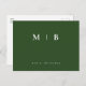 Simple Sleek Monogram Green Weihnachten Postkarte
