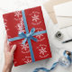 This wrapping paper features a simple geometric snowflake on a deep red background with editable text above and below. Personalize the wrapping paper right on the product page with the recipient’s and gifter’s names or with a seasonal greeting like “Merry” above and “Christmas” below. Featuring original art from Dogwood & Thistle. If using a seasonal greeting, can recommend using capitals and putting spaces between each letter, I.e. M E R R Y and. C H R I S T M A S