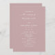 Einfaches Solid Dusty Mauve Hochzeitsprogramm. Diese moderne Minimal Order of Services Card ist schlicht klassisch und elegant mit schlichter Hintergrundfarbe und einem hübschen Schriftart mit Schwänzen in der Schriftzeichen-Kalligraphie. Im neuen Farbraum gezeigt. Erhältlich in mehreren Farboptionen, oder fühlen Sie sich frei, die Farben aus dem Editor zu bearbeiten (klicken Sie weiter anpassen während der Personalisierung). Um mehr zu sehen, suchen Sie nach Chic Paperie's Hochzeitskollektionen 2022, um alle über Trend Designs und Hochzeitsfarben für dieses Jahr zu sehen.