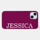 SIMPLE STYLISH CUSTOMIZED NAME MODERN DEEP RED iPhone 15 PLUS CASE ADD YOUR NAME HERE
