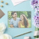 A simple Save the Date Card with elegant calligraphy and a special photo overlay.