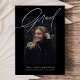 Einfache Trendy Calligraphy Foto Abschluss Announcement verfügt über ein Foto auf der Vorderseite und zwei Fotos auf der Rückseite.
