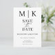 These elegant, modern wedding or bridal shower save the date feature a simple black and white text design that exudes minimalist style. Add your initials or monogram to make them completely your own.