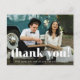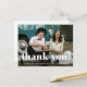 Einfaches und skurriles Hochzeitskartentyps Foto dank Kartenpostcard mit weißer Typografie und einem Foto vorne, mit einer bearbeitbaren Danksagung mit Rücksendeadresse auf der Rückseite.