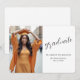 A modern and simple graduation announcement card with your photo and classic elegant script black on white.