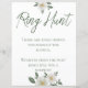 Frame the sheet and sit it on a table for your guests to see as they enter the shower. Prior to the event hide plastic rings throughout the venue.