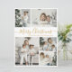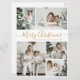Einfache, elegante Kalligrafie White und Gold 5 Foto Collage Frohe Weihnachts Script Holiday Card. Dieses festliche, minimalistische, skurrile 5 (5) Foto Feiertagskarte Template verfügt über eine hübsche Gitter Foto Collage und sagt "Frohe Weihnachten"! Der "Frohe Weihnachten"-Grußtext ist in einer schönen Hand geschrieben Wirble Swash-Schwanz-Schriftart-Typ in schwarz auf weißem Hintergrund. Auf der Rückseite mit Ihrer Grußbotschaft-Vorlage mit einem kleinen Herzdoodle auf weiß und einer horizontalen Bildvorlage. Hübsche Grußkarte für Ihre Familie und Freunde in der Weihnachtszeit.