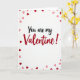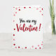 This greeting card features the message “You are my Valentine!” centered on a white background. “You are my” is written in smooth black cursive-style lettering, and “Valentine!” appears right after it in larger red letters that stand out. Small hearts in red and light pink are scattered around the words, mostly near the edges, like a loose border. The hearts vary a bit in size and shade, which makes the front feel lively without being too busy. Overall, it feels sweet and direct, like you’re saying what you mean without overthinking it 🥰. It’s meaningful to give because it works for a partner, a crush, or even a close friend you care about. Share it to help pass along Valentine’s Day feelings with a little extra love ❤️.