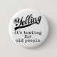 Dieser lustige Knopf sagt "das Schreien: er ist simst für alte Leute." Wenn junge Leute wollen, um mit jemand über einem Raum zu sprechen, sie Text. Aber Schrei der alten Leute einfach.