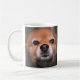 Das Gesicht des niedlicher, neugieriger Hundes auf einer Kaffee-Tasse.