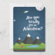 Flattoon/Ikone-Kunsteinladung mit Outdoors, Bergen, Nachthimmel, Mond, Rakete, Zelt und den Worten "Sind Sie bereit für ein Abenteuer?" und "JA!" auf der Rückseite mit Raum für Veranstaltungsdetails.