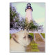 Ein photographisches Bild einer weißen englischen Bulldogge wird mit einem Hintergrund von die Treppen gezeigt, die zu einen rustikalen Leuchtturm führen.